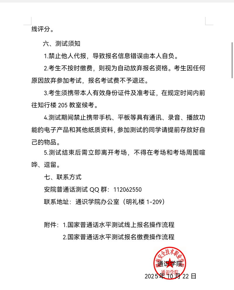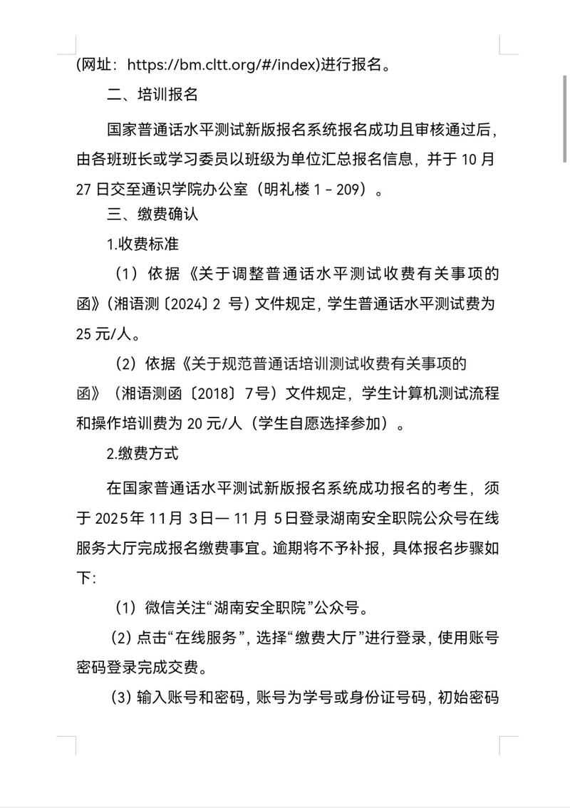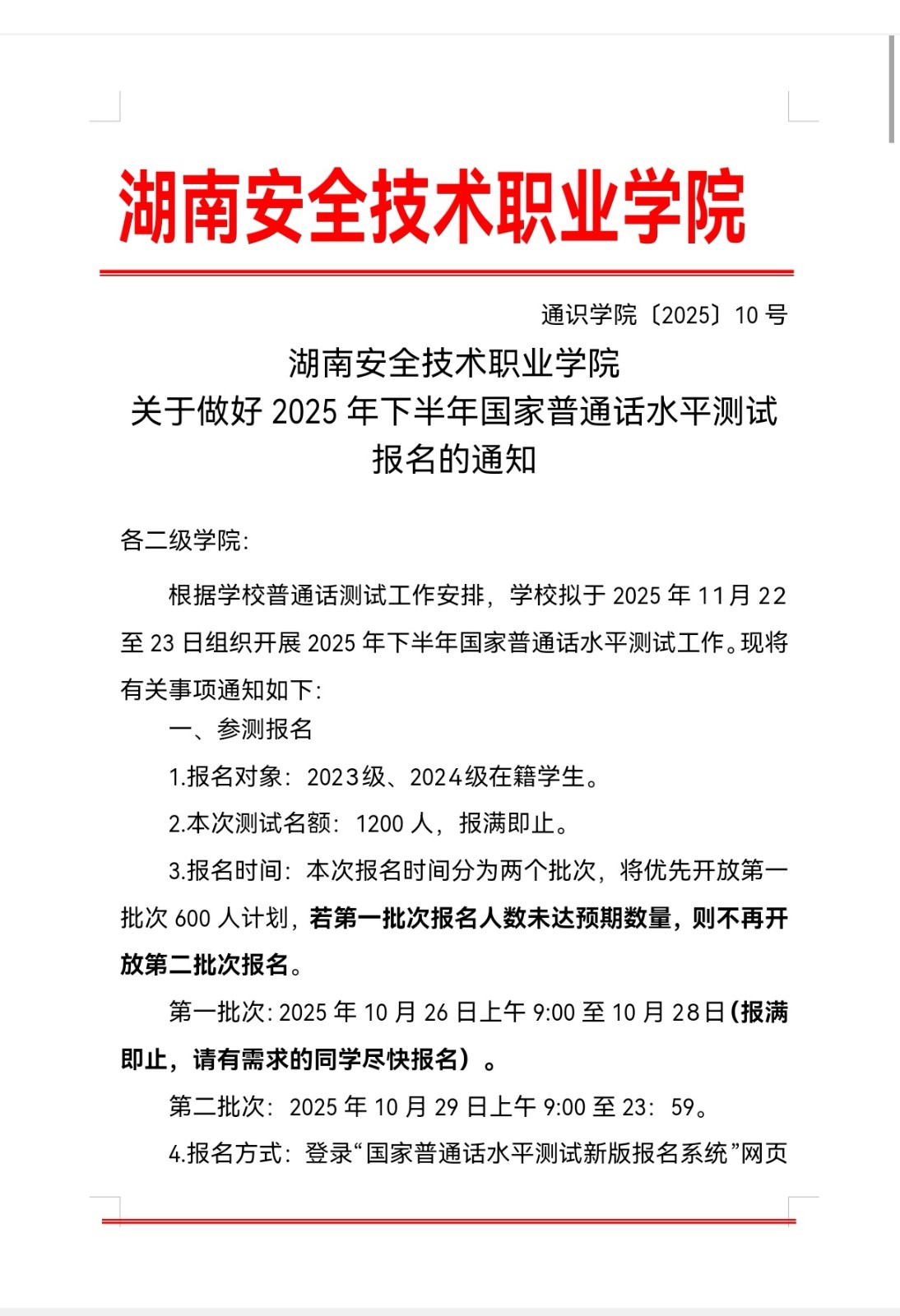 湖南安全技术职业学院关于做好2025年下半年国家普通话水平测试报名的通知.doc